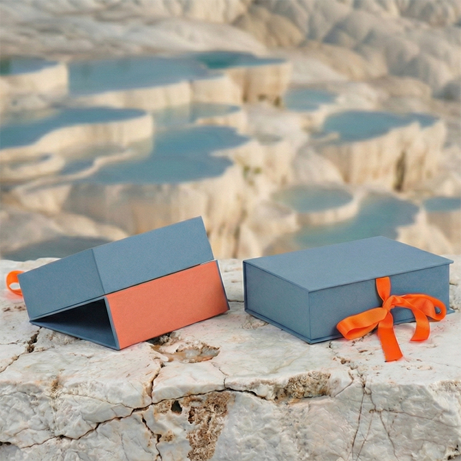 Helios Stand Presentation Box transforms into an angled display stand when opened, bringing the product into immediate focus.