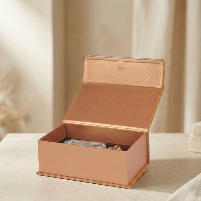 Urania Magnetic Lid Box delivers a timeless premium presence with its classic form and magnetic closure system. The solid, tactile opening feel enhances perceived product value.