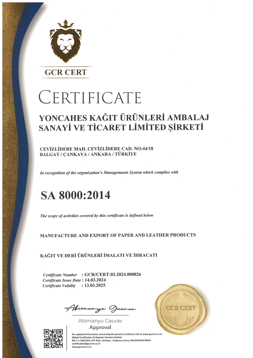SA 8000 sertifikası, etik çalışma koşullarını sağlamak için uluslararası düzeyde tanınan bir standarttır. Çocuk işçiliği, zorla çalıştırma, sağlık ve güvenlik, adil ücretlendirme gibi önemli alanları kapsar ve bir şirketin sosyal sorumluluğa bağlılığını gösterir.